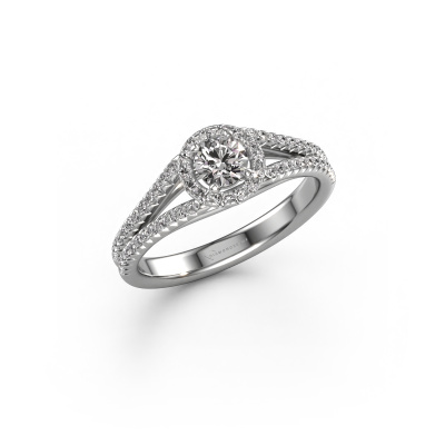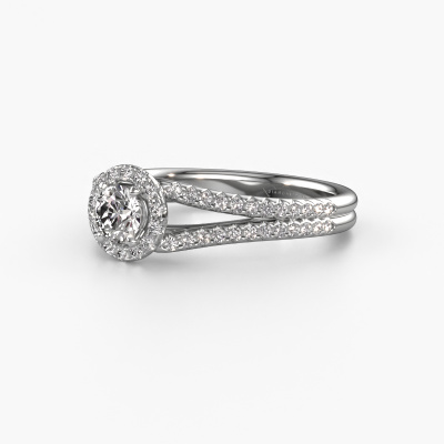 This platinum ring is called Verla rnd 2 and is set with 0.634 crt diamond. This exclusive platinum halo engagement ring is a true work of art! The ornaments are crafted with a lot of patience and great passion. In order to create this ring with great precision, this craft requires a keen eye and skilful hand. A challenge which ignites a fire in our expert goldsmith. The exquisite diamonds are set in a special way so they stand out even more. This gives the ring an even more glamorous appearance. The split band engagement ring is actually unique on its own because of the gemstones which we carefully select especially for this ring. On top of that you select the precious metals which will be used to create a unique ring for the most extraordinary woman in your life! This jewel is made just for you, with attention to detail and design.Because we design and deliver our own rings, we can offer you a engagement ring at a price you won't find anywhere else. A ring is made to order, which helps prevent excess supplies, so we can make you a great price offer. We understand it feels risky, buying your engagement ring online, but we will gladly assist in the designing process, taking your budget into consideration.Our team adds new designs to our online collection daily. Our designers and goldsmiths work together in creating the best design. We strive to offer a diverse collection of jewels. Perhaps you have a specific jewel design in mind. One you came across somewhere. Please contact us for a free consultation. We will make you an offer, based on a fair price/ quality ratio, that will baffle you.To make it easier for you, we offer a 30 day return policy. Check our terms and conditions.