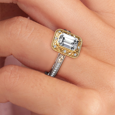 This 14 Carat white gold ring is called Alice EME and is set with 1.70 crt diamond. An extraordinary white gold vintage ring. One that will surely make the love of your life shine like a diamond! That is what we hope to achieve. This vintage Engagement ring is set with exquisite diamond. Whichever gemstone you choose from our selection, is up to you. The gemstone is selected with great care because we believe your pearl edges Engagement ring must be adorned with nothing but the most beautiful gemstone. Wouldn't you agree? Our expert goldsmith will design your ring in our own crafting studio, where the diamond will be set with great precision. The ring will then be polished till it shines perfectly. Nothing but the best for the love of your life! This jewel is made just for you by our master goldsmiths in our own studio.By using a combination of the latest modern techniques, combined with ancient crafting, we can make all our Engagement rings in our own studio. Each jewel is made to order. This is advantageous because we can offer you a price you won't find anywhere else.Do you have a specific ring in mind? One you came across somewhere. Please feel free to tell us your wishes and we will turn your design into a unique Engagement ring. You can follow the development of your ring design because we use 3D drawings. This gives you a realistic preview of your design. We will gladly send you a non-binding offer, based on a fair price/ quality ratio. It will amaze you.To make it easier for you, we offer a 30 day return policy. Check our terms and conditions.