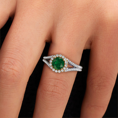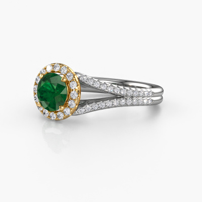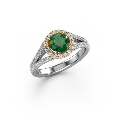 This 14 Carat white gold ring is called Verla rnd 2 and is set with 6.5 mm emerald. This exclusive white gold halo engagement ring is a true work of art! The ornaments are crafted with a lot of patience and great passion. In order to create this ring with great precision, this craft requires a keen eye and skilful hand. A challenge which ignites a fire in our expert goldsmith. The exquisite emerald are set in a special way so they stand out even more. This gives the ring an even more glamorous appearance. The split band engagement ring is actually unique on its own because of the gemstones which we carefully select especially for this ring. On top of that you select the precious metals which will be used to create a unique ring for the most extraordinary woman in your life! This jewel is made just for you, with attention to detail and design.Because we design and deliver our own rings, we can offer you a engagement ring at a price you won't find anywhere else. A ring is made to order, which helps prevent excess supplies, so we can make you a great price offer. We understand it feels risky, buying your engagement ring online, but we will gladly assist in the designing process, taking your budget into consideration.Our team adds new designs to our online collection daily. Our designers and goldsmiths work together in creating the best design. We strive to offer a diverse collection of jewels. Perhaps you have a specific jewel design in mind. One you came across somewhere. Please contact us for a free consultation. We will make you an offer, based on a fair price/ quality ratio, that will baffle you.To make it easier for you, we offer a 30 day return policy. Check our terms and conditions.