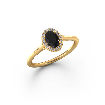 The ring shown above is called the Seline ovl 1. We call this type of ring a halo ring because it has one centre gemstone and a band that is also pave set with gemstones. The 14 Carat gold engagement ring is set with a oval 0.60 crt black diamond centre stone and the band is pave set with diamonds. What makes this classic gold halo ring special are the smaller sized stones embracing the centre stone. This gorgeous engagement ring is called a halo ring because the smaller gemstones give the centre stone a halo of surrounding light. In order for the smaller stones to enhance the centre stone, they have to be placed so there is no interference of light. And that's when our expert goldsmiths come in. Each individual stone is carefully set in the ring by hand. During manufacturing, light fall is constantly monitored to make sure the special halo is still visible. In the end you get a unique engagement ring, with a black diamond of your choosing at its centre. You can imagine the effect of a ring of such significance when you give it to her on her special day to shine. Are you on a budget? Please feel free to contact us, so we can go discuss your options. We offer our engagement rings at guaranteed best price, because we make them to order. You won't find such a price anywhere else!Our team adds new designs to our online collection daily. Our designers and goldsmiths work together in creating the best design. We strive to offer a diverse collection of jewels. Perhaps you have a specific jewel design in mind. One you came across somewhere. Please contact us for a free consultation. We will make you an offer, based on a fair price/ quality ratio, that will baffle you.To make it easier for you, we offer a 30 day return policy. Check our terms and conditions.