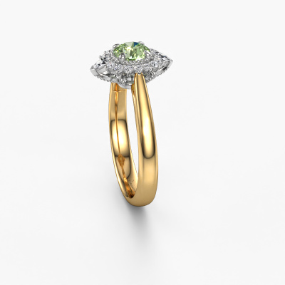 This 14 Carat gold ring is called Susan and is set with 5 mm green lab grown diamond. Is your girlfriend hooked on vintage? Then this gold tasteful engagement ring will surely match her style perfectly. A trendy ring with just a hint of vintage adornment. A truly stunning, romantic design! Especially when you customize your ring to your own liking. This vintage halo engagement ring is set with stunning green lab grown diamonds. As you can see, you are the boss in selecting a gemstone which matches the style of your girlfriend best. Each gemstone is carefully selected by our merchants whom are spread throughout the world. Nothing but the best gems for our expert goldsmith. After all, it is his crowning glory! Each jewel is made just for you, with attention to detail and design.By using a combination of the latest modern techniques, combined with ancient crafting, we can make all our engagement rings in our own studio. Each jewel is made to order. This is advantageous because we can offer you a price you won't find anywhere else.Our team adds new designs to our online collection daily. Our designers and goldsmiths work together in creating the best design. We strive to offer a diverse collection of jewels. Perhaps you have a specific jewel design in mind. One you came across somewhere. Please contact us for a free consultation. We will make you an offer, based on a fair price/ quality ratio, that will baffle you.To make it easier for you, we offer a 30 day return policy. Check our terms and conditions.