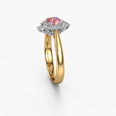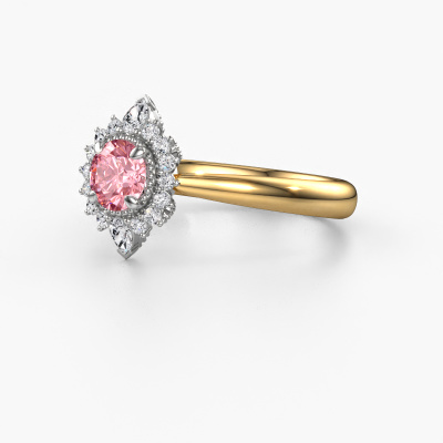 This 14 Carat gold ring is called Susan and is set with 5 mm pink lab grown diamond. Is your girlfriend hooked on vintage? Then this gold tasteful engagement ring will surely match her style perfectly. A trendy ring with just a hint of vintage adornment. A truly stunning, romantic design! Especially when you customize your ring to your own liking. This vintage halo engagement ring is set with stunning pink lab grown diamonds. As you can see, you are the boss in selecting a gemstone which matches the style of your girlfriend best. Each gemstone is carefully selected by our merchants whom are spread throughout the world. Nothing but the best gems for our expert goldsmith. After all, it is his crowning glory! Each jewel is made just for you, with attention to detail and design.By using a combination of the latest modern techniques, combined with ancient crafting, we can make all our engagement rings in our own studio. Each jewel is made to order. This is advantageous because we can offer you a price you won't find anywhere else.Our team adds new designs to our online collection daily. Our designers and goldsmiths work together in creating the best design. We strive to offer a diverse collection of jewels. Perhaps you have a specific jewel design in mind. One you came across somewhere. Please contact us for a free consultation. We will make you an offer, based on a fair price/ quality ratio, that will baffle you.To make it easier for you, we offer a 30 day return policy. Check our terms and conditions.