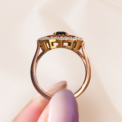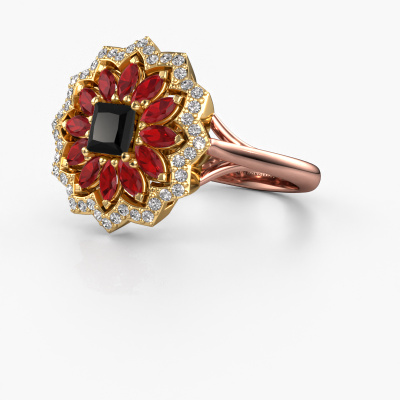 This 14 Carat rose gold ring is called Franka and is set with 0.70 crt black diamond. Is your girlfriend hooked on vintage? Then this rose gold daring engagement ring will surely match her style perfectly. A trendy ring with just a hint of vintage adornment. A truly stunning, romantic design! Especially when you customize your ring to your own liking. This vintage halo engagement ring is set with stunning black diamonds. As you can see, you are the boss in selecting a gemstone which matches the style of your girlfriend best. Each gemstone is carefully selected by our merchants whom are spread throughout the world. Nothing but the best gems for our expert goldsmith. After all, it is his crowning glory! Each jewel is made just for you by our master goldsmiths in our own studio.By using a combination of the latest modern techniques, combined with ancient crafting, we can make all our engagement rings in our own studio. Each jewel is made to order. This is advantageous because we can offer you a price you won't find anywhere else.Our designers and goldsmiths work together each day, creating new jewels. Perhaps you have found a nice vintage engagement ring somewhere, which can be used to customize your unique ring. Please feel free to contact us. We will make you an offer, based on a fair price/ quality ratio, which will amaze you.To make it easier for you, we offer a 30 day return policy. Check our terms and conditions.