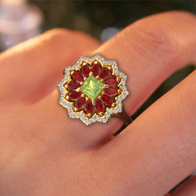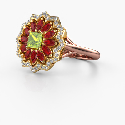 This 14 Carat rose gold ring is called Franka and is set with 4 mm peridot. Is your girlfriend hooked on vintage? Then this rose gold daring engagement ring will surely match her style perfectly. A trendy ring with just a hint of vintage adornment. A truly stunning, romantic design! Especially when you customize your ring to your own liking. This vintage halo engagement ring is set with stunning peridot. As you can see, you are the boss in selecting a gemstone which matches the style of your girlfriend best. Each gemstone is carefully selected by our merchants whom are spread throughout the world. Nothing but the best gems for our expert goldsmith. After all, it is his crowning glory! Each jewel is made just for you by our master goldsmiths in our own studio.By using a combination of the latest modern techniques, combined with ancient crafting, we can make all our engagement rings in our own studio. Each jewel is made to order. This is advantageous because we can offer you a price you won't find anywhere else.Our designers and goldsmiths work together each day, creating new jewels. Perhaps you have found a nice vintage engagement ring somewhere, which can be used to customize your unique ring. Please feel free to contact us. We will make you an offer, based on a fair price/ quality ratio, which will amaze you.To make it easier for you, we offer a 30 day return policy. Check our terms and conditions.