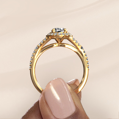 This 14 Carat gold ring is called Pamela RND and is set with 1.105 crt lab grown diamond. This exclusive gold halo engagement ring is a true work of art! The ornaments are crafted with a lot of patience and great passion. In order to create this ring with great precision, this craft requires a keen eye and skilful hand. A challenge which ignites a fire in our expert goldsmith. The exquisite lab-grown diamonds are set in a special way so they stand out even more. This gives the ring an even more glamorous appearance. The ajour engagement ring is actually unique on its own because of the gemstones which we carefully select especially for this ring. On top of that you select the precious metals which will be used to create a unique ring for the most extraordinary woman in your life! This jewel is unique in every way! Simply customize to your liking,Because we design and deliver our own rings, we can offer you a engagement ring at a price you won't find anywhere else. A ring is made to order, which helps prevent excess supplies, so we can make you a great price offer. We understand it feels risky, buying your engagement ring online, but we will gladly assist in the designing process, taking your budget into consideration.Our team adds new designs to our online collection daily. Our designers and goldsmiths work together in creating the best design. We strive to offer a diverse collection of jewels. Perhaps you have a specific jewel design in mind. One you came across somewhere. Please contact us for a free consultation. We will make you an offer, based on a fair price/ quality ratio, that will baffle you.To make it easier for you, we offer a 30 day return policy. Check our terms and conditions.