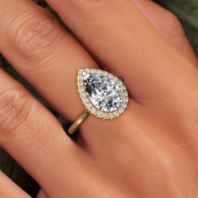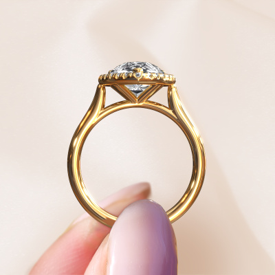 This 14 Carat gold ring is called Seline per 1 and is set with 3.288 crt lab grown diamond. This exclusive gold halo engagement ring is a true work of art! The ornaments are crafted with a lot of patience and great passion. In order to create this ring with great precision, this craft requires a keen eye and skilful hand. A challenge which ignites a fire in our expert goldsmith. The exquisite lab-grown diamonds are set in a special way so they stand out even more. This gives the ring an even more glamorous appearance. The charming engagement ring is actually unique on its own because of the gemstones which we carefully select especially for this ring. On top of that you select the precious metals which will be used to create a unique ring for the most extraordinary woman in your life! This jewel is made with passion and love by one of our master goldsmiths.After receiving your order, our goldsmiths will start the creative process of making your Seline per 1 engagement ring. We don't keep stock. This is advantageous because these costs will not be passed on to you. Therefore, we can offer jewellery at exceptionally low prices.Our team adds new designs to our online collection daily. Our designers and goldsmiths work together in creating the best design. We strive to offer a diverse collection of jewels. Perhaps you have a specific jewel design in mind. One you came across somewhere. Please contact us for a free consultation. We will make you an offer, based on a fair price/ quality ratio, that will baffle you.To make it easier for you, we offer a 30 day return policy. Check our terms and conditions.