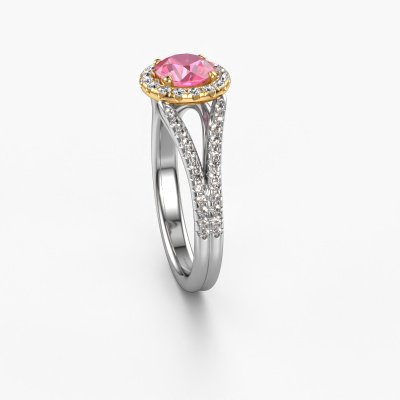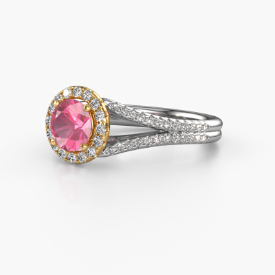 This 14 Carat white gold ring is called Verla rnd 2 and is set with 6.5 mm pink sapphire. This exclusive white gold halo engagement ring is a true work of art! The ornaments are crafted with a lot of patience and great passion. In order to create this ring with great precision, this craft requires a keen eye and skilful hand. A challenge which ignites a fire in our expert goldsmith. The exquisite pink sapphire are set in a special way so they stand out even more. This gives the ring an even more glamorous appearance. The split band engagement ring is actually unique on its own because of the gemstones which we carefully select especially for this ring. On top of that you select the precious metals which will be used to create a unique ring for the most extraordinary woman in your life! This jewel is made just for you, with attention to detail and design.Because we design and deliver our own rings, we can offer you a engagement ring at a price you won't find anywhere else. A ring is made to order, which helps prevent excess supplies, so we can make you a great price offer. We understand it feels risky, buying your engagement ring online, but we will gladly assist in the designing process, taking your budget into consideration.Our team adds new designs to our online collection daily. Our designers and goldsmiths work together in creating the best design. We strive to offer a diverse collection of jewels. Perhaps you have a specific jewel design in mind. One you came across somewhere. Please contact us for a free consultation. We will make you an offer, based on a fair price/ quality ratio, that will baffle you.To make it easier for you, we offer a 30 day return policy. Check our terms and conditions.