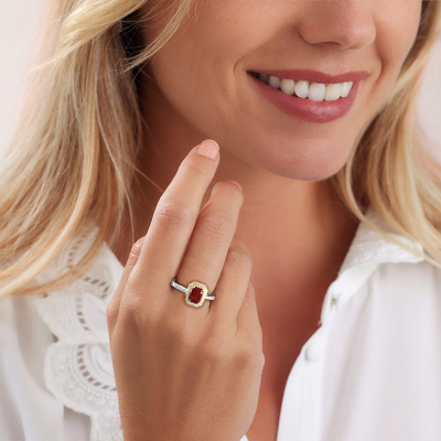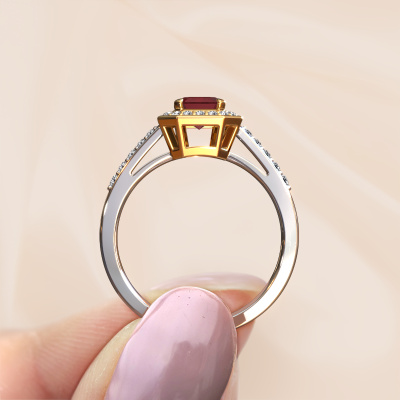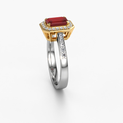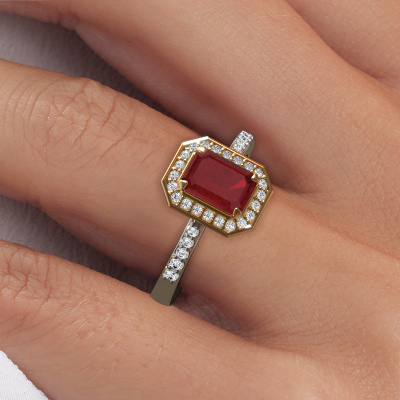 This 14 Carat white gold ring is called Dodie 2 eme and is set with 7x5 mm ruby. This exclusive white gold halo engagement ring is a true work of art! The ornaments are crafted with a lot of patience and great passion. In order to create this ring with great precision, this craft requires a keen eye and skilful hand. A challenge which ignites a fire in our expert goldsmith. The exquisite ruby are set in a special way so they stand out even more. This gives the ring an even more glamorous appearance. The pretty engagement ring is actually unique on its own because of the gemstones which we carefully select especially for this ring. On top of that you select the precious metals which will be used to create a unique ring for the most extraordinary woman in your life! This jewel is made just for you, with attention to detail and design.Because we design and deliver our own rings, we can offer you a engagement ring at a price you won't find anywhere else. A ring is made to order, which helps prevent excess supplies, so we can make you a great price offer. We understand it feels risky, buying your engagement ring online, but we will gladly assist in the designing process, taking your budget into consideration.Do you have a specific ring in mind? One you came across somewhere. Please feel free to tell us your wishes and we will turn your design into a unique engagement ring. You can follow the development of your ring design because we use 3D drawings. This gives you a realistic preview of your design. We will gladly send you a non-binding offer, based on a fair price/ quality ratio. It will amaze you.To make it easier for you, we offer a 30 day return policy. Check our terms and conditions.