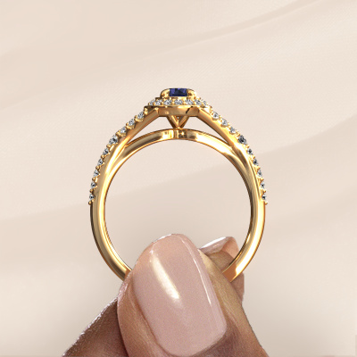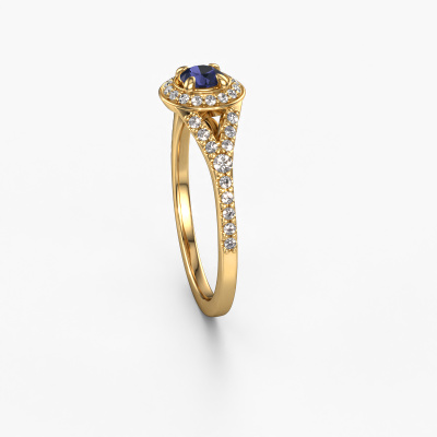 This 14 Carat gold ring is called Pamela RND and is set with 4 mm sapphire. This exclusive gold halo engagement ring is a true work of art! The ornaments are crafted with a lot of patience and great passion. In order to create this ring with great precision, this craft requires a keen eye and skilful hand. A challenge which ignites a fire in our expert goldsmith. The exquisite sapphire are set in a special way so they stand out even more. This gives the ring an even more glamorous appearance. The ajour engagement ring is actually unique on its own because of the gemstones which we carefully select especially for this ring. On top of that you select the precious metals which will be used to create a unique ring for the most extraordinary woman in your life! This jewel is unique in every way! Simply customize to your liking,Because we design and deliver our own rings, we can offer you a engagement ring at a price you won't find anywhere else. A ring is made to order, which helps prevent excess supplies, so we can make you a great price offer. We understand it feels risky, buying your engagement ring online, but we will gladly assist in the designing process, taking your budget into consideration.Our team adds new designs to our online collection daily. Our designers and goldsmiths work together in creating the best design. We strive to offer a diverse collection of jewels. Perhaps you have a specific jewel design in mind. One you came across somewhere. Please contact us for a free consultation. We will make you an offer, based on a fair price/ quality ratio, that will baffle you.To make it easier for you, we offer a 30 day return policy. Check our terms and conditions.