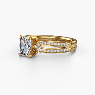 The ring shown above is called the Antonia rad 2. We call this type of ring a pavé solitaire ring because it has one centre gemstone and a band that is also pave set with gemstones. The 14 Carat gold engagement ring is set with a radiant 0.75 crt lab grown diamond centre stone and the band is pave set with diamond gemstones. Each jewel is made just for you by our master goldsmiths in our own studio.This chic gold pavé solitaire engagement ring has an exquisite radiant lab grown diamond centre stone. To further accentuate the centre stone, the band is fully set with more diamonds. Its open prong setting allows light to strike the lab grown diamond from various angles and this adds sparkle to your lab grown diamond ring. The photo shown above depicts the goldsmith's carefully handcrafted details of the ring. The high positioning of the centre stone is truly eye-catching. The perfect engagement ring for the crown jewel of your life! Because we design and deliver our own rings, we can offer you a engagement ring at a price you won't find anywhere else. A ring is made to order, which helps prevent excess supplies, so we can make you a great price offer. We understand it feels risky, buying your engagement ring online, but we will gladly assist in the designing process, taking your budget into consideration.Our team adds new designs to our online collection daily. Our designers and goldsmiths work together in creating the best design. We strive to offer a diverse collection of jewels. Perhaps you have a specific jewel design in mind. One you came across somewhere. Please contact us for a free consultation. We will make you an offer, based on a fair price/ quality ratio, that will baffle you.To make it easier for you, we offer a 30 day return policy. Check our terms and conditions.