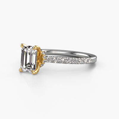 The ring shown above is called the Crystal EME 4. We call this type of ring a pavé solitaire ring because it has one centre gemstone and a band that is also pave set with gemstones. The 14 Carat white gold engagement ring is set with a emerald cut 1.15 crt lab grown diamond centre stone and the band is pave set with lab grown diamond gemstones. Each jewel is created to add sparkle to your finger, each jewel is lovingly made by hand by our goldsmiths.This fashionable white gold pavé solitaire engagement ring has an exquisite emerald cut lab grown diamond centre stone. To further accentuate the centre stone, the band is fully set with more lab-grown diamonds. Its open prong setting allows light to strike the lab grown diamond from various angles and this adds sparkle to your lab grown diamond ring. The photo shown above depicts the goldsmith's carefully handcrafted details of the ring. The high positioning of the centre stone is truly eye-catching. The perfect engagement ring for the crown jewel of your life! After receiving your order, our goldsmiths will passionately start the creative process of making your engagement ring in our own studio. Because we don't have a big stockpile, these costs will not be passed on to you. Our pricing is proof of that! We offer top quality jewels at lowest price, guaranteed.Our team adds new designs to our online collection daily. Our designers and goldsmiths work together in creating the best design. We strive to offer a diverse collection of jewels. Perhaps you have a specific jewel design in mind. One you came across somewhere. Please contact us for a free consultation. We will make you an offer, based on a fair price/ quality ratio, that will baffle you.To make it easier for you, we offer a 30 day return policy. Check our terms and conditions.