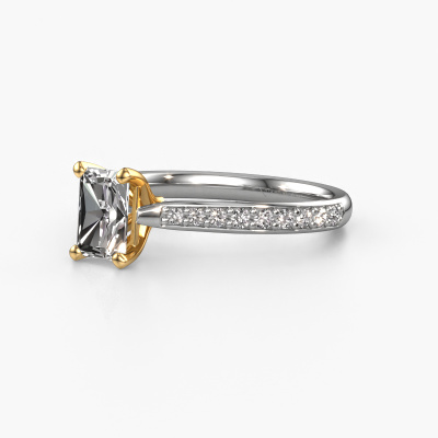 The ring shown above is called the Mignon rad 2. We call this type of ring a pavé solitaire ring because it has one centre gemstone and a band that is also pave set with gemstones. The 14 Carat white gold engagement ring is set with a radiant 0.75 crt lab grown diamond centre stone and the band is pave set with diamond gemstones. Each jewel is unique in every way! Simply customize to your liking,This traditional white gold pavé solitaire engagement ring has an exquisite radiant lab grown diamond centre stone. To further accentuate the centre stone, the band is fully set with more diamonds. Its open prong setting allows light to strike the lab grown diamond from various angles and this adds sparkle to your lab grown diamond ring. The photo shown above depicts the goldsmith's carefully handcrafted details of the ring. The high positioning of the centre stone is truly eye-catching. The perfect engagement ring for the crown jewel of your life! Are you on a budget? Please feel free to contact us, so we can go discuss your options. We offer our engagement rings at guaranteed best price, because we make them to order. You won't find such a price anywhere else!Have you found a specific engagement ring somewhere which you would like to give to your loved one? Please feel free to express your wishes to our jewel designers because we would be honoured to turn your design into a traditional engagement ring. You can follow the development of your ring design because we use 3D drawings. This gives you a realistic preview of how your design will look. You can also preorder a dummy. A dummy is a plastic ring, which can be shaped according your ring design. You can try it on and check if its width and size are suitable for you. We will gladly send you a non-binding offer, based on a fair price/ quality ratio. It will amaze you, considering the quality of the ring and gemstones.To make it easier for you, we offer a 30 day return policy. Check our terms and conditions.