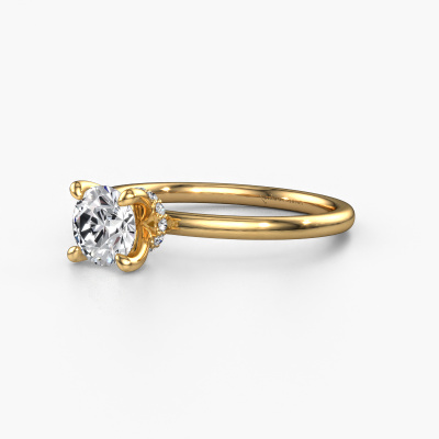 The ring shown above is called the Crystal RND 3, we call this a solitaire ring because it contains a single gemstone. The engagement ring is made in 14 Carat gold and has a round lab grown diamond of 0.70 crt. The cool thing about our configurator is that you can compile your own piece of jewellery, into a completely personalized one. This solitaire ring is crafted in the precious metals gold with gold, but of course you are free to pick your own colours. Each piece of jewellery is made with passion and love by one of our master goldsmiths.The solitaire ring is a special type of engagement ring. Its open prong setting allows light to strike the gemstone from various angles. This classic engagement ring is a stunning eye-catcher because of the high positioning of the gemstone. In order for you to commemorate your proposal with a unique ring, we carefully adorn this solitaire ring by hand. The love of your life deserves nothing but the best. By using a combination of the latest modern techniques, combined with ancient crafting, we can make all our engagement rings in our own studio. Each jewel is made to order. This is advantageous because we can offer you a price you won't find anywhere else.Different styles of new rings are made daily by our team. Perhaps you have found a solitaire engagement ring somewhere. One you would like to give to your loved one. Please feel free to share your thoughts and design with our jewel designers. We would love to turn your design into a classic engagement ring. You can follow the development of your ring design because we use very detailed 3D drawings. On top of that, you can order a dummy of the design. A dummy is a plastic ring, which can be shaped according your ring design. You can try it on and check if the engagement ring is up to standard. We will gladly send you a non-binding offer, based on a fair price/ quality ratio. The offer will baffle you, considering the quality of the ring and gemstones.To make it easier for you, we offer a 30 day return policy. Check our terms and conditions.