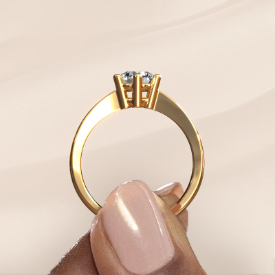 The ring shown above is called the Luna 1, we call this a solitaire ring because it contains a single gemstone. The engagement ring is made in 14 Carat gold and has a round lab grown diamond of 0.70 crt. The cool thing about our configurator is that you can compile your own piece of jewellery, into a completely personalized one. This solitaire ring is crafted in the precious metals gold with gold, but of course you are free to pick your own colours. Each piece of jewellery is made with passion and love by one of our master goldsmiths.The solitaire ring is a special type of engagement ring. Its open prong setting allows light to strike the gemstone from various angles. This classic engagement ring is a stunning eye-catcher because of the high positioning of the gemstone. In order for you to commemorate your proposal with a unique ring, we carefully adorn this solitaire ring by hand. The love of your life deserves nothing but the best. After receiving your order, our goldsmiths will start the creative process of making your Luna 1 engagement ring. We don't keep stock. This is advantageous because these costs will not be passed on to you. Therefore, we can offer jewellery at exceptionally low prices.Our designers and goldsmiths work together each day, creating new jewels. Perhaps you have found a nice classic engagement ring somewhere, which can be used to customize your unique ring. Please feel free to contact us. We will make you an offer, based on a fair price/ quality ratio, which will amaze you.To make it easier for you, we offer a 30 day return policy. Check our terms and conditions.