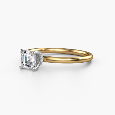 The ring shown above is called the Crystal ASSC 3, we call this a solitaire ring because it contains a single gemstone. The engagement ring is made in 14 Carat gold and has a asscher lab grown diamond of 0.75 crt. The cool thing about our configurator is that you can compile your own piece of jewellery, into a completely personalized one. This solitaire ring is crafted in the precious metals gold with gold, but of course you are free to pick your own colours. Each piece of jewellery is created to add sparkle to your finger, each jewel is lovingly made by hand by our goldsmiths.The solitaire ring is a special type of engagement ring. Its open prong setting allows light to strike the gemstone from various angles. This exclusive engagement ring is a stunning eye-catcher because of the high positioning of the gemstone. In order for you to commemorate your proposal with a unique ring, we carefully adorn this solitaire ring by hand. The love of your life deserves nothing but the best. By using our modern techniques, we can design and customize the finest quality jewels with the utmost care for you. Our engagement rings are always priced 30 percent lower than other jewellers. We make engagement rings to order so we don't have to maintain a large stock. If you have a certain budget, we are more than happy to advice you accordingly.Do you have a specific ring in mind? One you came across somewhere. Please feel free to tell us your wishes and we will turn your design into a unique engagement ring. You can follow the development of your ring design because we use 3D drawings. This gives you a realistic preview of your design. We will gladly send you a non-binding offer, based on a fair price/ quality ratio. It will amaze you.To make it easier for you, we offer a 30 day return policy. Check our terms and conditions.
