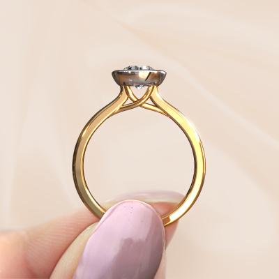 The ring shown above is called the Kaylee, we call this a solitaire ring because it contains a single gemstone. The Engagement ring is made in 14 Carat gold and has a round lab grown diamond of 0.70 crt. The cool thing about our configurator is that you can compile your own piece of jewellery, into a completely personalized one. This solitaire ring is crafted in the precious metals gold with white gold, but of course you are free to pick your own colours. Each piece of jewellery is made by a team of passionate goldsmiths and jewel designers. This will make your crown jewel truly eye-catching.The solitaire ring is a special type of Engagement ring. Its open prong setting allows light to strike the gemstone from various angles. This fashionable Engagement ring is a stunning eye-catcher because of the high positioning of the gemstone. In order for you to commemorate your proposal with a unique ring, we carefully adorn this solitaire ring by hand. The love of your life deserves nothing but the best. Because we design and deliver our own rings, we can offer you a Engagement ring at a price you won't find anywhere else. A ring is made to order, which helps prevent excess supplies, so we can make you a great price offer. We understand it feels risky, buying your Engagement ring online, but we will gladly assist in the designing process, taking your budget into consideration.Different styles of new rings are made daily by our team. Perhaps you have found a solitaire Engagement ring somewhere. One you would like to give to your loved one. Please feel free to share your thoughts and design with our jewel designers. We would love to turn your design into a fashionable Engagement ring. You can follow the development of your ring design because we use very detailed 3D drawings. On top of that, you can order a dummy of the design. A dummy is a plastic ring, which can be shaped according your ring design. You can try it on and check if the Engagement ring is up to standard. We will gladly send you a non-binding offer, based on a fair price/ quality ratio. The offer will baffle you, considering the quality of the ring and gemstones.To make it easier for you, we offer a 30 day return policy. Check our terms and conditions.