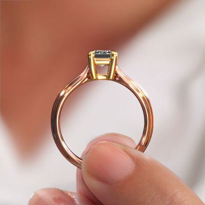 The ring shown above is called the Antonia eme 1, we call this a solitaire ring because it contains a single gemstone. The engagement ring is made in 14 Carat rose gold and has a emerald cut lab grown diamond of 1.15 crt. The cool thing about our configurator is that you can compile your own piece of jewellery, into a completely personalized one. This solitaire ring is crafted in the precious metals rose gold with gold, but of course you are free to pick your own colours. Each piece of jewellery is created to add sparkle to your finger, each jewel is lovingly made by hand by our goldsmiths.The solitaire ring is a special type of engagement ring. Its open prong setting allows light to strike the gemstone from various angles. This fantasy engagement ring is a stunning eye-catcher because of the high positioning of the gemstone. In order for you to commemorate your proposal with a unique ring, we carefully adorn this solitaire ring by hand. The love of your life deserves nothing but the best. Because we design and deliver our own rings, we can offer you a engagement ring at a price you won't find anywhere else. A ring is made to order, which helps prevent excess supplies, so we can make you a great price offer. We understand it feels risky, buying your engagement ring online, but we will gladly assist in the designing process, taking your budget into consideration.Our designers and goldsmiths work together each day, creating new jewels. Perhaps you have found a nice fantasy engagement ring somewhere, which can be used to customize your unique ring. Please feel free to contact us. We will make you an offer, based on a fair price/ quality ratio, which will amaze you.To make it easier for you, we offer a 30 day return policy. Check our terms and conditions.