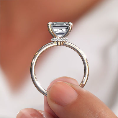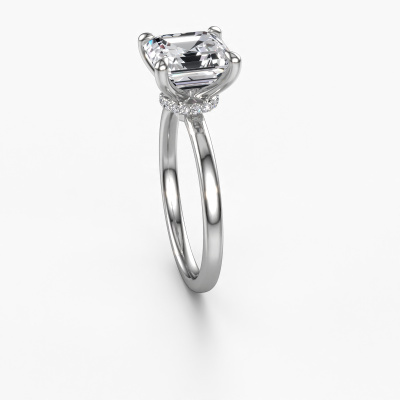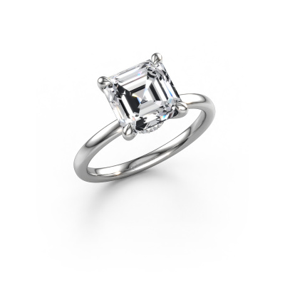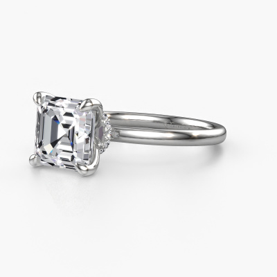 The ring shown above is called the Crystal ASSC 3, we call this a solitaire ring because it contains a single gemstone. The engagement ring is made in 14 Carat white gold and has a asscher lab grown diamond of 3.00 crt. The cool thing about our configurator is that you can compile your own piece of jewellery, into a completely personalized one. This solitaire ring is crafted in the precious metals white gold with white gold, but of course you are free to pick your own colours. Each piece of jewellery is created to add sparkle to your finger, each jewel is lovingly made by hand by our goldsmiths.The solitaire ring is a special type of engagement ring. Its open prong setting allows light to strike the gemstone from various angles. This exclusive engagement ring is a stunning eye-catcher because of the high positioning of the gemstone. In order for you to commemorate your proposal with a unique ring, we carefully adorn this solitaire ring by hand. The love of your life deserves nothing but the best. By using our modern techniques, we can design and customize the finest quality jewels with the utmost care for you. Our engagement rings are always priced 30 percent lower than other jewellers. We make engagement rings to order so we don't have to maintain a large stock. If you have a certain budget, we are more than happy to advice you accordingly.Do you have a specific ring in mind? One you came across somewhere. Please feel free to tell us your wishes and we will turn your design into a unique engagement ring. You can follow the development of your ring design because we use 3D drawings. This gives you a realistic preview of your design. We will gladly send you a non-binding offer, based on a fair price/ quality ratio. It will amaze you.To make it easier for you, we offer a 30 day return policy. Check our terms and conditions.