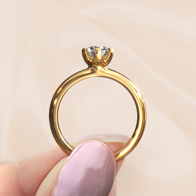 In your eyes, no one else compares to her. She is one in a million, unlike anyone else and pure? These qualities are emphasized perfectly by our modern gold solitaire lab grown diamond ring. This lab grown diamond is carefully selected by our keen artisan goldsmiths. It equals the unique qualities of the love of your life. There is no better way to memorialize your proposal than this symbol of true love. The ring shown above is called the Lorretta, we call this a solitaire ring because it contains a single gemstone. The engagement ring is made in 14 Carat gold and has a round lab grown diamond of 0.70 crt. Each piece of jewellery is made with passion and love by one of our master goldsmiths.By using a combination of the latest modern techniques, combined with ancient crafting, we can make all our engagement rings in our own studio. Each jewel is made to order. This is advantageous because we can offer you a price you won't find anywhere else.Our team adds new designs to our online collection daily. Our designers and goldsmiths work together in creating the best design. We strive to offer a diverse collection of jewels. Perhaps you have a specific jewel design in mind. One you came across somewhere. Please contact us for a free consultation. We will make you an offer, based on a fair price/ quality ratio, that will baffle you.To make it easier for you, we offer a 30 day return policy. Check our terms and conditions.