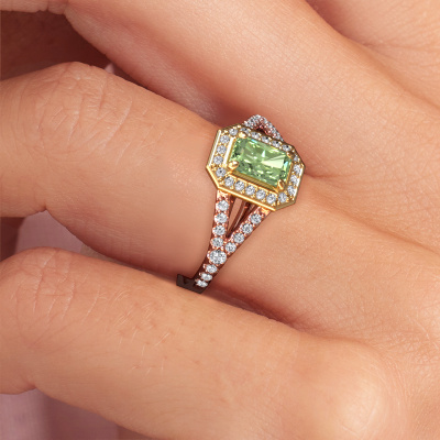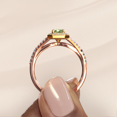 This 14 Carat rose gold ring is called Pamela RAD and is set with 6x4 mm green lab grown diamond. Are you looking for a luxury rose gold engagement ring which you can customize to your own liking? This luxury engagement ring is set with green lab grown diamond which is carefully selected for this specific ring in order to create the best effect. Our expert goldsmith will create your ring in our own crafting studio, where the green lab grown diamond will be set with great care. The ring will then be polished till it shines perfectly. Nothing but the best for the love of your life! The great thing about our online tool is, that you can compile your own jewellery into a unique, personalized piece. Each piece of jewellery is made just for you, with attention to detail and design.Because we design and deliver our own rings, we can offer you a engagement ring at a price you won't find anywhere else. A ring is made to order, which helps prevent excess supplies, so we can make you a great price offer. We understand it feels risky, buying your engagement ring online, but we will gladly assist in the designing process, taking your budget into consideration.Our team adds new designs to our online collection daily. Our designers and goldsmiths work together in creating the best design. We strive to offer a diverse collection of jewels. Perhaps you have a specific jewel design in mind. One you came across somewhere. Please contact us for a free consultation. We will make you an offer, based on a fair price/ quality ratio, that will baffle you.To make it easier for you, we offer a 30 day return policy. Check our terms and conditions.