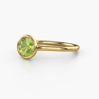 The ring shown above is called the Lavon RND. We call this a solitaire ring because it contains a single gemstone. The engagement ring is made in 14 Carat gold and has a round peridot of 6.5 mm. This extraordinary modern gold solitaire engagement ring is set with a beautiful round peridot to add sparkle to your proposal. The open prong setting allows light to strike the gemstone from various angles. Did you know a diamond represents everlasting love and fidelity? This makes it a perfect centrepiece. Our goldsmith carefully positions the gemstone of your choosing high on top of the ring, which makes it stand out. Each piece of jewellery is made by a team of passionate goldsmiths and jewel designers. This will make your crown jewel truly eye-catching.Are you on a budget? Please feel free to contact us, so we can go discuss your options. We offer our engagement rings at guaranteed best price, because we make them to order. You won't find such a price anywhere else!Our team adds new designs to our online collection daily. Our designers and goldsmiths work together in creating the best design. We strive to offer a diverse collection of jewels. Perhaps you have a specific jewel design in mind. One you came across somewhere. Please contact us for a free consultation. We will make you an offer, based on a fair price/ quality ratio, that will baffle you.To make it easier for you, we offer a 30 day return policy. Check our terms and conditions.