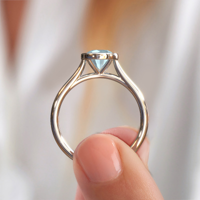 The ring shown above is called the Lavon RND. We call this a solitaire ring because it contains a single gemstone. The engagement ring is made in platinum and has a round aquamarine of 6.5 mm. This extraordinary modern platinum solitaire engagement ring is set with a beautiful round aquamarine to add sparkle to your proposal. The open prong setting allows light to strike the gemstone from various angles. Did you know a diamond represents everlasting love and fidelity? This makes it a perfect centrepiece. Our goldsmith carefully positions the gemstone of your choosing high on top of the ring, which makes it stand out. Each piece of jewellery is made by a team of passionate goldsmiths and jewel designers. This will make your crown jewel truly eye-catching.Are you on a budget? Please feel free to contact us, so we can go discuss your options. We offer our engagement rings at guaranteed best price, because we make them to order. You won't find such a price anywhere else!Our team adds new designs to our online collection daily. Our designers and goldsmiths work together in creating the best design. We strive to offer a diverse collection of jewels. Perhaps you have a specific jewel design in mind. One you came across somewhere. Please contact us for a free consultation. We will make you an offer, based on a fair price/ quality ratio, that will baffle you.To make it easier for you, we offer a 30 day return policy. Check our terms and conditions.