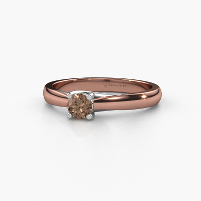 The ring shown above is called the Mia 1. We call this a solitaire ring because it contains a single gemstone. The engagement ring is made in 14 Carat rose gold and has a round brown diamond of 0.25 crt. This extraordinary modern rose gold solitaire engagement ring is set with a beautiful round brown diamond to add sparkle to your proposal. The open prong setting allows light to strike the gemstone from various angles. Did you know a diamond represents everlasting love and fidelity? This makes it a perfect centrepiece. Our goldsmith carefully positions the gemstone of your choosing high on top of the ring, which makes it stand out. Each piece of jewellery is made just for you by our master goldsmiths in our own studio.By using our modern techniques, we can design and customize the finest quality jewels with the utmost care for you. Our engagement rings are always priced 30 percent lower than other jewellers. We make engagement rings to order so we don't have to maintain a large stock. If you have a certain budget, we are more than happy to advice you accordingly.Our designers and goldsmiths work together each day, creating new jewels. Perhaps you have found a nice modern engagement ring somewhere, which can be used to customize your unique ring. Please feel free to contact us. We will make you an offer, based on a fair price/ quality ratio, which will amaze you.To make it easier for you, we offer a 30 day return policy. Check our terms and conditions.