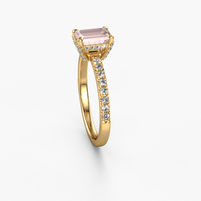 The ring shown above is called the Saskia eme 1, we call this a solitaire ring because it contains a single gemstone. The engagement ring is made in 14 Carat gold and has a emerald cut morganite champagne of 7x5 mm. The cool thing about our configurator is that you can compile your own piece of jewellery, into a completely personalized one. This solitaire ring is crafted in the precious metals gold with gold, but of course you are free to pick your own colours. Each piece of jewellery is made with passion and love by one of our master goldsmiths.The solitaire ring is a special type of engagement ring. Its open prong setting allows light to strike the gemstone from various angles. This exclusive engagement ring is a stunning eye-catcher because of the high positioning of the gemstone. In order for you to commemorate your proposal with a unique ring, we carefully adorn this solitaire ring by hand. The love of your life deserves nothing but the best. After receiving your order, our goldsmiths will passionately start the creative process of making your engagement ring in our own studio. Because we don't have a big stockpile, these costs will not be passed on to you. Our pricing is proof of that! We offer top quality jewels at lowest price, guaranteed.Our team adds new designs to our online collection daily. Our designers and goldsmiths work together in creating the best design. We strive to offer a diverse collection of jewels. Perhaps you have a specific jewel design in mind. One you came across somewhere. Please contact us for a free consultation. We will make you an offer, based on a fair price/ quality ratio, that will baffle you.To make it easier for you, we offer a 30 day return policy. Check our terms and conditions.