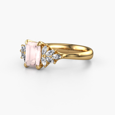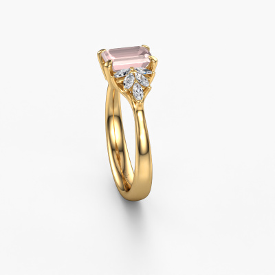 This 14 Carat gold ring is called Fiona EME and is set with 7x5 mm morganite champagne. What is it that makes your relationship unique? What is it about her that makes you want to bend down on one knee? The unique bond between the two of you is emphasized by an equally unique ring. A one of a kind special pavé solitaire engagement ring made especially for her. That is why this vintage ring fits her like a glove. Each specific detail of this special gold morganite champagne set engagement ring is hand-picked, crafted and polished by our expert goldsmith. The result is an exquisite ring, unique and perfectly crafted to perfection. That is what our expert Goldsmiths strive for. This jewel is created to add sparkle to your finger, each jewel is lovingly made by hand by our goldsmiths.Because we design and deliver our own rings, we can offer you a engagement ring at a price you won't find anywhere else. A ring is made to order, which helps prevent excess supplies, so we can make you a great price offer. We understand it feels risky, buying your engagement ring online, but we will gladly assist in the designing process, taking your budget into consideration.Our team adds new designs to our online collection daily. Our designers and goldsmiths work together in creating the best design. We strive to offer a diverse collection of jewels. Perhaps you have a specific jewel design in mind. One you came across somewhere. Please contact us for a free consultation. We will make you an offer, based on a fair price/ quality ratio, that will baffle you.To make it easier for you, we offer a 30 day return policy. Check our terms and conditions.