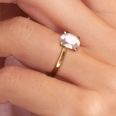 The ring shown above is called the Crystal OVL 1, we call this a solitaire ring because it contains a single gemstone. The engagement ring is made in 14 Carat gold and has a oval morganite champagne of 8x6 mm. The cool thing about our configurator is that you can compile your own piece of jewellery, into a completely personalized one. This solitaire ring is crafted in the precious metals gold with gold, but of course you are free to pick your own colours. Each piece of jewellery is created to add sparkle to your finger, each jewel is lovingly made by hand by our goldsmiths.The solitaire ring is a special type of engagement ring. Its open prong setting allows light to strike the gemstone from various angles. This classic engagement ring is a stunning eye-catcher because of the high positioning of the gemstone. In order for you to commemorate your proposal with a unique ring, we carefully adorn this solitaire ring by hand. The love of your life deserves nothing but the best. Because we design and deliver our own rings, we can offer you a engagement ring at a price you won't find anywhere else. A ring is made to order, which helps prevent excess supplies, so we can make you a great price offer. We understand it feels risky, buying your engagement ring online, but we will gladly assist in the designing process, taking your budget into consideration.Our team adds new designs to our online collection daily. Our designers and goldsmiths work together in creating the best design. We strive to offer a diverse collection of jewels. Perhaps you have a specific jewel design in mind. One you came across somewhere. Please contact us for a free consultation. We will make you an offer, based on a fair price/ quality ratio, that will baffle you.To make it easier for you, we offer a 30 day return policy. Check our terms and conditions.