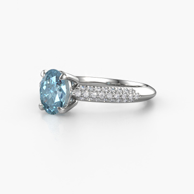 The ring shown above is called Morane OVL. We call this a pave ring. The smaller gemstones of pave ring are set in a close row which gives it an extra shine. This platinum ring is set with blue lab grown diamonds 7,5x5,5 mm. The ring shown above is called Morane OVL. We call this a pave ring. The smaller gemstones of pave ring are set in a close row which gives it an extra shine. Which emotion would you like to convey when you get down on one knee for her? This platinum engagement ring is pave set with stunning blue lab grown diamonds to represent your everlasting love. The gemstones are carefully hand selected and set by our goldsmith. The unique reflection of light on the ring can only be captured if the blue lab grown diamonds are set in a perfect line. During the crafting and polishing of the jewellery, light fall is constantly monitored, until the expert goldsmith is satisfied with the result. A ring designed just for you to make your loved one shine bright like a diamond. Because there is only one special person fit to wear such a unique ring! With this meaningful piece of art, the symbol of infinity, you will prove your undying love for her and that you want to share the rest of your life with no one else. How will she be able to resist? This piece of jewellery is created to add sparkle to your finger, each jewel is lovingly made by hand by our goldsmiths.By using our modern techniques, we can design and customize the finest quality jewels with the utmost care for you. Our engagement rings are always priced 30 percent lower than other jewellers. We make engagement rings to order so we don't have to maintain a large stock. If you have a certain budget, we are more than happy to advice you accordingly.Our designers and goldsmiths work together each day, creating new jewels. Perhaps you have found a nice modern engagement ring somewhere, which can be used to customize your unique ring. Please feel free to contact us. We will make you an offer, based on a fair price/ quality ratio, which will amaze you.To make it easier for you, we offer a 30 day return policy. Check our terms and conditions.