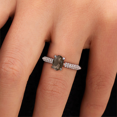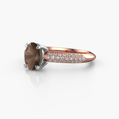 The ring shown above is called Morane OVL. We call this a pave ring. The smaller gemstones of pave ring are set in a close row which gives it an extra shine. This 14 Carat rose gold ring is set with smokey quartz 7,5x5,5 mm. The ring shown above is called Morane OVL. We call this a pave ring. The smaller gemstones of pave ring are set in a close row which gives it an extra shine. Which emotion would you like to convey when you get down on one knee for her? This rose gold engagement ring is pave set with stunning smokey quartz to represent your everlasting love. The gemstones are carefully hand selected and set by our goldsmith. The unique reflection of light on the ring can only be captured if the smokey quartz are set in a perfect line. During the crafting and polishing of the jewellery, light fall is constantly monitored, until the expert goldsmith is satisfied with the result. A ring designed just for you to make your loved one shine bright like a diamond. Because there is only one special person fit to wear such a unique ring! With this meaningful piece of art, the symbol of infinity, you will prove your undying love for her and that you want to share the rest of your life with no one else. How will she be able to resist? This piece of jewellery is created to add sparkle to your finger, each jewel is lovingly made by hand by our goldsmiths.By using our modern techniques, we can design and customize the finest quality jewels with the utmost care for you. Our engagement rings are always priced 30 percent lower than other jewellers. We make engagement rings to order so we don't have to maintain a large stock. If you have a certain budget, we are more than happy to advice you accordingly.Our designers and goldsmiths work together each day, creating new jewels. Perhaps you have found a nice modern engagement ring somewhere, which can be used to customize your unique ring. Please feel free to contact us. We will make you an offer, based on a fair price/ quality ratio, which will amaze you.To make it easier for you, we offer a 30 day return policy. Check our terms and conditions.