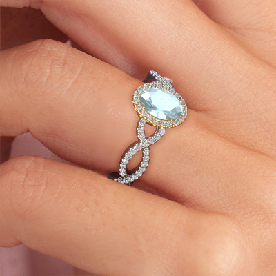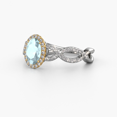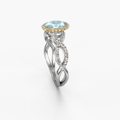 This 14 Carat white gold ring is called Dionne ovl and is set with 7x5 mm aquamarine. This exclusive white gold pavé solitaire engagement ring is a true work of art! The ornaments are crafted with a lot of patience and great passion. In order to create this ring with great precision, this craft requires a keen eye and skilful hand. A challenge which ignites a fire in our expert goldsmith. The exquisite aquamarine are set in a special way so they stand out even more. This gives the ring an even more glamorous appearance. The twisted engagement ring is actually unique on its own because of the gemstones which we carefully select especially for this ring. On top of that you select the precious metals which will be used to create a unique ring for the most extraordinary woman in your life! This jewel is unique in every way! Simply customize to your likingAfter receiving your order, our goldsmiths will start the creative process of making your Dionne ovl engagement ring. We don't keep stock. This is advantageous because these costs will not be passed on to you. Therefore, we can offer jewellery at exceptionally low prices.Different styles of new rings are made daily by our team. Perhaps you have found a pavé solitaire engagement ring somewhere. One you would like to give to your loved one. Please feel free to share your thoughts and design with our jewel designers. We would love to turn your design into a exclusive engagement ring. You can follow the development of your ring design because we use very detailed 3D drawings. On top of that, you can order a dummy of the design. A dummy is a plastic ring, which can be shaped according your ring design. You can try it on and check if the engagement ring is up to standard. We will gladly send you a non-binding offer, based on a fair price/ quality ratio. The offer will baffle you, considering the quality of the ring and gemstones.To make it easier for you, we offer a 30 day return policy. Check our terms and conditions.