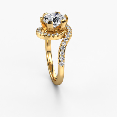 This 14 Carat gold ring is called Elli and is set with 2.399 crt diamond. This exclusive gold pavé solitaire engagement ring is a true work of art! The ornaments are crafted with a lot of patience and great passion. In order to create this ring with great precision, this craft requires a keen eye and skilful hand. A challenge which ignites a fire in our expert goldsmith. The exquisite diamonds are set in a special way so they stand out even more. This gives the ring an even more glamorous appearance. The graceful engagement ring is actually unique on its own because of the gemstones which we carefully select especially for this ring. On top of that you select the precious metals which will be used to create a unique ring for the most extraordinary woman in your life! This jewel is made just for you, with attention to detail and design.After receiving your order, our goldsmiths will passionately start the creative process of making your engagement ring in our own studio. Because we don't have a big stockpile, these costs will not be passed on to you. Our pricing is proof of that! We offer top quality jewels at lowest price, guaranteed.Our designers and goldsmiths work together each day, creating new jewels. Perhaps you have found a nice exclusive engagement ring somewhere, which can be used to customize your unique ring. Please feel free to contact us. We will make you an offer, based on a fair price/ quality ratio, which will amaze you.To make it easier for you, we offer a 30 day return policy. Check our terms and conditions.