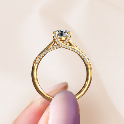 This 14 Carat gold ring is called Mia 3 and is set with 0.998 crt diamond. This exclusive gold pavé solitaire engagement ring is a true work of art! The ornaments are crafted with a lot of patience and great passion. In order to create this ring with great precision, this craft requires a keen eye and skilful hand. A challenge which ignites a fire in our expert goldsmith. The exquisite diamonds are set in a special way so they stand out even more. This gives the ring an even more glamorous appearance. The shiny engagement ring is actually unique on its own because of the gemstones which we carefully select especially for this ring. On top of that you select the precious metals which will be used to create a unique ring for the most extraordinary woman in your life! This jewel is unique in every way! Simply customize to your likingAre you on a budget? Please feel free to contact us, so we can go discuss your options. We offer our engagement rings at guaranteed best price, because we make them to order. You won't find such a price anywhere else!Our team adds new designs to our online collection daily. Our designers and goldsmiths work together in creating the best design. We strive to offer a diverse collection of jewels. Perhaps you have a specific jewel design in mind. One you came across somewhere. Please contact us for a free consultation. We will make you an offer, based on a fair price/ quality ratio, that will baffle you.To make it easier for you, we offer a 30 day return policy. Check our terms and conditions.