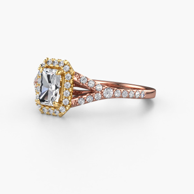 This 14 Carat rose gold ring is called Kimber RAD and is set with 0.986 crt diamond. This exclusive rose gold pavé solitaire engagement ring is a true work of art! The ornaments are crafted with a lot of patience and great passion. In order to create this ring with great precision, this craft requires a keen eye and skilful hand. A challenge which ignites a fire in our expert goldsmith. The exquisite diamonds are set in a special way so they stand out even more. This gives the ring an even more glamorous appearance. The sparkling engagement ring is actually unique on its own because of the gemstones which we carefully select especially for this ring. On top of that you select the precious metals which will be used to create a unique ring for the most extraordinary woman in your life! This jewel is made just for you, with attention to detail and design.After receiving your order, our goldsmiths will passionately start the creative process of making your engagement ring in our own studio. Because we don't have a big stockpile, these costs will not be passed on to you. Our pricing is proof of that! We offer top quality jewels at lowest price, guaranteed.Our designers and goldsmiths work together each day, creating new jewels. Perhaps you have found a nice luxury engagement ring somewhere, which can be used to customize your unique ring. Please feel free to contact us. We will make you an offer, based on a fair price/ quality ratio, which will amaze you.To make it easier for you, we offer a 30 day return policy. Check our terms and conditions.