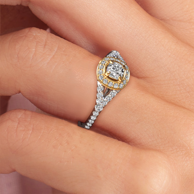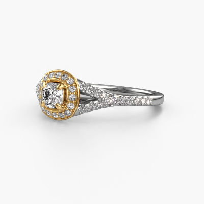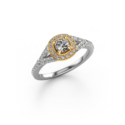 The ring shown above is called the Pamela CUS. We call this type of ring a halo ring because it has one centre gemstone and a band that is also pave set with gemstones. The 14 Carat white gold engagement ring is set with a cushion 0.33 crt diamond centre stone and the band is pave set with lab-grown diamonds. What makes this luxury white gold pavé solitaire ring special are the smaller sized stones embracing the centre stone. This gorgeous engagement ring is called a pavé solitaire ring because the smaller gemstones give the centre stone a pavé solitaire of surrounding light. In order for the smaller stones to enhance the centre stone, they have to be placed so there is no interference of light. And that's when our expert goldsmiths come in. Each individual stone is carefully set in the ring by hand. During manufacturing, light fall is constantly monitored to make sure the special pavé solitaire is still visible. In the end you get a unique engagement ring, with a diamond of your choosing at its centre. You can imagine the effect of a ring of such significance when you give it to her on her special day to shine. After receiving your order, our goldsmiths will passionately start the creative process of making your engagement ring in our own studio. Because we don't have a big stockpile, these costs will not be passed on to you. Our pricing is proof of that! We offer top quality jewels at lowest price, guaranteed.Different styles of new rings are made daily by our team. Perhaps you have found a pavé solitaire engagement ring somewhere. One you would like to give to your loved one. Please feel free to share your thoughts and design with our jewel designers. We would love to turn your design into a luxury engagement ring. You can follow the development of your ring design because we use very detailed 3D drawings. On top of that, you can order a dummy of the design. A dummy is a plastic ring, which can be shaped according your ring design. You can try it on and check if the engagement ring is up to standard. We will gladly send you a non-binding offer, based on a fair price/ quality ratio. The offer will baffle you, considering the quality of the ring and gemstones.To make it easier for you, we offer a 30 day return policy. Check our terms and conditions.