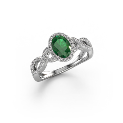 This platinum ring is called Dionne ovl and is set with 7x5 mm emerald. This exclusive platinum pavé solitaire engagement ring is a true work of art! The ornaments are crafted with a lot of patience and great passion. In order to create this ring with great precision, this craft requires a keen eye and skilful hand. A challenge which ignites a fire in our expert goldsmith. The exquisite emerald are set in a special way so they stand out even more. This gives the ring an even more glamorous appearance. The twisted engagement ring is actually unique on its own because of the gemstones which we carefully select especially for this ring. On top of that you select the precious metals which will be used to create a unique ring for the most extraordinary woman in your life! This jewel is unique in every way! Simply customize to your likingAfter receiving your order, our goldsmiths will start the creative process of making your Dionne ovl engagement ring. We don't keep stock. This is advantageous because these costs will not be passed on to you. Therefore, we can offer jewellery at exceptionally low prices.Different styles of new rings are made daily by our team. Perhaps you have found a pavé solitaire engagement ring somewhere. One you would like to give to your loved one. Please feel free to share your thoughts and design with our jewel designers. We would love to turn your design into a exclusive engagement ring. You can follow the development of your ring design because we use very detailed 3D drawings. On top of that, you can order a dummy of the design. A dummy is a plastic ring, which can be shaped according your ring design. You can try it on and check if the engagement ring is up to standard. We will gladly send you a non-binding offer, based on a fair price/ quality ratio. The offer will baffle you, considering the quality of the ring and gemstones.To make it easier for you, we offer a 30 day return policy. Check our terms and conditions.