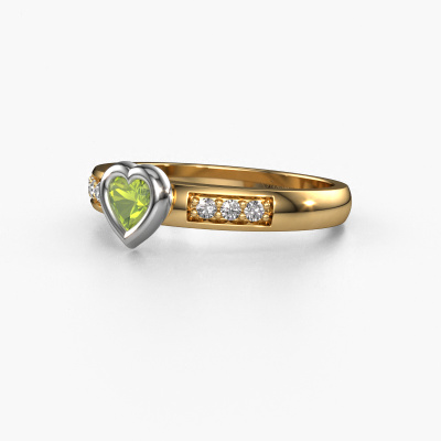This 14 Carat gold ring is called Lieke Heart and is set with peridot. Do you keep up with the latest fashion trends? Do you want a unique engagement ring that matches your lifestyle? This hearts engagement ring is an extraordinary ring which can be custom-made to fit your or her personal style. This trendy gold engagement ring is set with peridot. Our peridot are carefully selected for this specific ring in order to create the best effect. Our expert goldsmith will create your ring in our own artisan studio where the peridot will be set with great care. The ring will then be polished to perfection. Nothing but the best for the love of your life! This jewel is unique in every way! Simply customize to your likingAfter receiving your order, our goldsmiths will passionately start the creative process of making your engagement ring in our own studio. Because we don't have a big stockpile, these costs will not be passed on to you. Our pricing is proof of that! We offer top quality jewels at lowest price, guaranteed.Different styles of new rings are made daily by our team. Perhaps you have found a pavé solitaire engagement ring somewhere. One you would like to give to your loved one. Please feel free to share your thoughts and design with our jewel designers. We would love to turn your design into a trendy engagement ring. You can follow the development of your ring design because we use very detailed 3D drawings. On top of that, you can order a dummy of the design. A dummy is a plastic ring, which can be shaped according your ring design. You can try it on and check if the engagement ring is up to standard. We will gladly send you a non-binding offer, based on a fair price/ quality ratio. The offer will baffle you, considering the quality of the ring and gemstones.To make it easier for you, we offer a 30 day return policy. Check our terms and conditions.