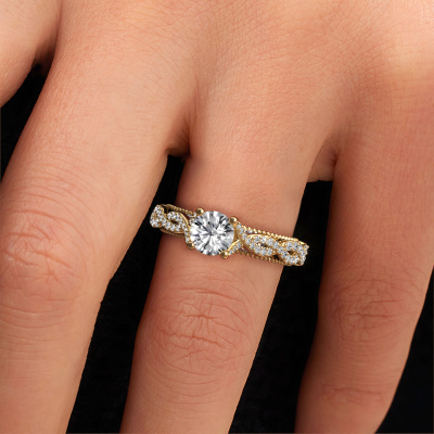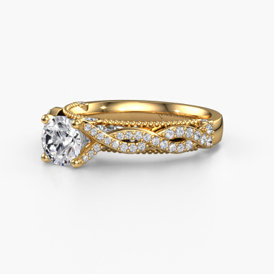 This 14 Carat gold ring is called Chantelle and is set with 1.102 crt diamond. Is your girlfriend hooked on vintage? Then this gold daring engagement ring will surely match her style perfectly. A trendy ring with just a hint of vintage adornment. A truly stunning, romantic design! Especially when you customize your ring to your own liking. This vintage pavé solitaire engagement ring is set with stunning diamonds. As you can see, you are the boss in selecting a gemstone which matches the style of your girlfriend best. Each gemstone is carefully selected by our merchants whom are spread throughout the world. Nothing but the best gems for our expert goldsmith. After all, it is his crowning glory! Each jewel is made by a team of passionate goldsmiths and jewel designers. This will make your crown jewel truly eye-catching.Are you on a budget? Please feel free to contact us, so we can go discuss your options. We offer our engagement rings at guaranteed best price, because we make them to order. You won't find such a price anywhere else!Our designers and goldsmiths work together each day, creating new jewels. Perhaps you have found a nice vintage engagement ring somewhere, which can be used to customize your unique ring. Please feel free to contact us. We will make you an offer, based on a fair price/ quality ratio, which will amaze you.To make it easier for you, we offer a 30 day return policy. Check our terms and conditions.