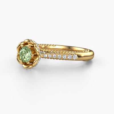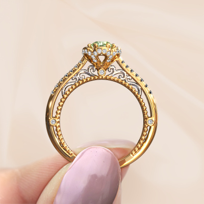 This 14 Carat gold ring is called Abbey and is set with 4.2 mm green lab grown diamond. Is your girlfriend hooked on vintage? Then this gold pearl edges engagement ring will surely match her style perfectly. A trendy ring with just a hint of vintage adornment. A truly stunning, romantic design! Especially when you customize your ring to your own liking. This vintage pavé solitaire engagement ring is set with stunning green lab grown diamonds. As you can see, you are the boss in selecting a gemstone which matches the style of your girlfriend best. Each gemstone is carefully selected by our merchants whom are spread throughout the world. Nothing but the best gems for our expert goldsmith. After all, it is his crowning glory! Each jewel is made just for you, with attention to detail and design.