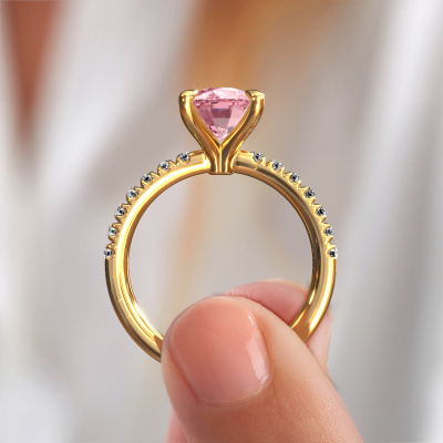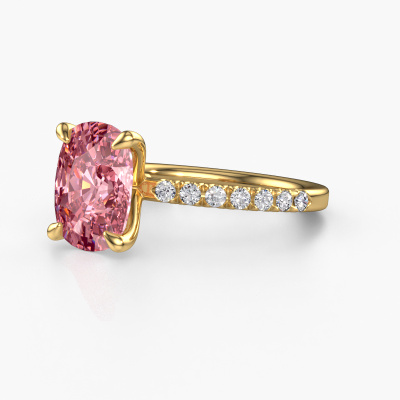 The ring shown above is called the Crystal CSH 2, we call this a solitaire ring because it contains a single gemstone. The engagement ring is made in 14 Carat gold and has a cushion rectangle pink lab grown diamond of 10.2x7.6 mm. This exclusive gold solitaire ring with exquisite cushion rectangle pink lab grown diamond is a beautiful engagement ring. The open prong setting allows light to strike the gemstone from various angles. The ring also stands out because of the high positioning of the gemstone. Because diamonds symbolize true love and purity, they make the perfect gift for the love of your life. The symbol of eternal love is the centerpiece of this solitaire ring. Like a diamond, all other types of precious metal have their own attributed symbolic meaning. You can compile the pavé solitaire engagement ring yourself in various precious metal combinations. This one has the combination of 14 Carat gold with gold. Each piece of jewelry is made with passion and love by one of our master goldsmiths.After receiving your order, our goldsmiths will passionately start the creative process of making your engagement ring in our own studio. Because we don't have a big stockpile, these costs will not be passed on to you. Our pricing is proof of that! We offer top quality jewels at lowest price, guaranteed.Our designers and goldsmiths work together each day, creating new jewels. Perhaps you have found a nice exclusive engagement ring somewhere, which can be used to customize your unique ring. Please feel free to contact us. We will make you an offer, based on a fair price/ quality ratio, which will amaze you.To make it easier for you, we offer a 30 day return policy. Check our terms and conditions.
