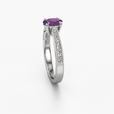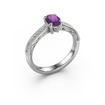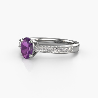 This platinum ring is called Shonta OVL and is set with 7x5 mm amethyst. Is your girlfriend hooked on vintage? Then this platinum pearl designs engagement ring will surely match her style perfectly. A trendy ring with just a hint of fantasy adornment. A truly stunning, romantic design! Especially when you customize your ring to your own liking. This fantasy pavé solitaire engagement ring is set with stunning amethysten. As you can see, you are the boss in selecting a gemstone which matches the style of your girlfriend best. Each gemstone is carefully selected by our merchants whom are spread throughout the world. Nothing but the best gems for our expert goldsmith. After all, it is his crowning glory! Each jewel is unique in every way! Simply customize to your liking,By using a combination of the latest modern techniques, combined with ancient crafting, we can make all our engagement rings in our own studio. Each jewel is made to order. This is advantageous because we can offer you a price you won't find anywhere else.Our team adds new designs to our online collection daily. Our designers and goldsmiths work together in creating the best design. We strive to offer a diverse collection of jewels. Perhaps you have a specific jewel design in mind. One you came across somewhere. Please contact us for a free consultation. We will make you an offer, based on a fair price/ quality ratio, that will baffle you.To make it easier for you, we offer a 30 day return policy. Check our terms and conditions.