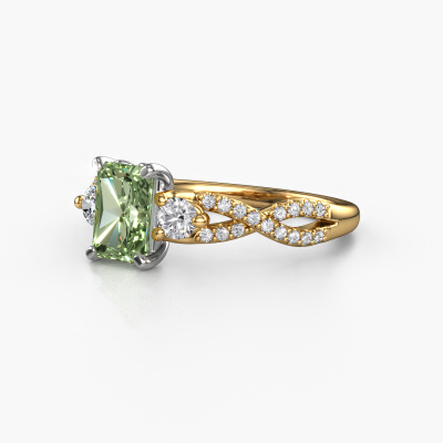 This 14 Carat gold ring is called Marilou RAD and is set with 7x5 mm green lab grown diamond. For you, there is only one person in your life who stands out in a crowd. Only one that makes your heart skip a beat. A true gem! She, above all others, deserves a special gift. A unique customized jewel made in her honour. We believe this ring is perfect for your special moment. Each detail of this exclusive gold pavé solitaire engagement ring is selected by hand, crafted and polished by our expert goldsmith in our own artisan studio. We strive to achieve the perfect design and composition of the ring, so it enhances the unique features of our green lab grown diamonds, and lets them shine even brighter. It takes a lot of precision to make but in the end it pays off because of the sheer beauty of the ring. And that is our main goal. It's what gets us excited. The great thing about our online tool is, that you can design your own jewellery into a unique, personalized piece. This unique twist engagement ring is created with the precious metal combination of gold and gold. But of course you are completely free to select other colours. Each piece of jewellery is created to add sparkle to your finger, each jewel is lovingly made by hand by our goldsmiths.By using our modern techniques, we can design and customize the finest quality jewels with the utmost care for you. Our engagement rings are always priced 30 percent lower than other jewellers. We make engagement rings to order so we don't have to maintain a large stock. If you have a certain budget, we are more than happy to advice you accordingly.Our team adds new designs to our online collection daily. Our designers and goldsmiths work together in creating the best design. We strive to offer a diverse collection of jewels. Perhaps you have a specific jewel design in mind. One you came across somewhere. Please contact us for a free consultation. We will make you an offer, based on a fair price/ quality ratio, that will baffle you.To make it easier for you, we offer a 30 day return policy. Check our terms and conditions.