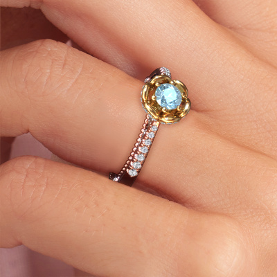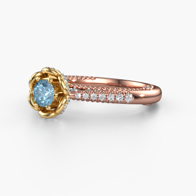 This 14 Carat rose gold ring is called Abbey and is set with 4.2 mm blue lab grown diamond. Is your girlfriend hooked on vintage? Then this rose gold pearl edges engagement ring will surely match her style perfectly. A trendy ring with just a hint of vintage adornment. A truly stunning, romantic design! Especially when you customize your ring to your own liking. This vintage pavé solitaire engagement ring is set with stunning blue lab grown diamonds. As you can see, you are the boss in selecting a gemstone which matches the style of your girlfriend best. Each gemstone is carefully selected by our merchants whom are spread throughout the world. Nothing but the best gems for our expert goldsmith. After all, it is his crowning glory! Each jewel is made just for you, with attention to detail and design.