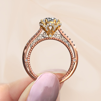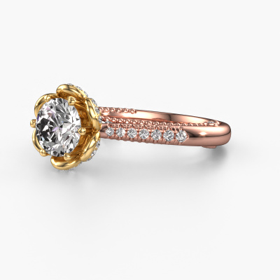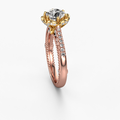 This 14 Carat rose gold ring is called Abbey and is set with 1.277 crt diamond. Is your girlfriend hooked on vintage? Then this rose gold pearl edges engagement ring will surely match her style perfectly. A trendy ring with just a hint of vintage adornment. A truly stunning, romantic design! Especially when you customize your ring to your own liking. This vintage pavé solitaire engagement ring is set with stunning diamonds. As you can see, you are the boss in selecting a gemstone which matches the style of your girlfriend best. Each gemstone is carefully selected by our merchants whom are spread throughout the world. Nothing but the best gems for our expert goldsmith. After all, it is his crowning glory! Each jewel is made just for you, with attention to detail and design.By using our modern techniques, we can design and customize the finest quality jewels with the utmost care for you. Our engagement rings are always priced 30 percent lower than other jewellers. We make engagement rings to order so we don't have to maintain a large stock. If you have a certain budget, we are more than happy to advice you accordingly.Our designers and goldsmiths work together each day, creating new jewels. Perhaps you have found a nice vintage engagement ring somewhere, which can be used to customize your unique ring. Please feel free to contact us. We will make you an offer, based on a fair price/ quality ratio, which will amaze you.To make it easier for you, we offer a 30 day return policy. Check our terms and conditions.