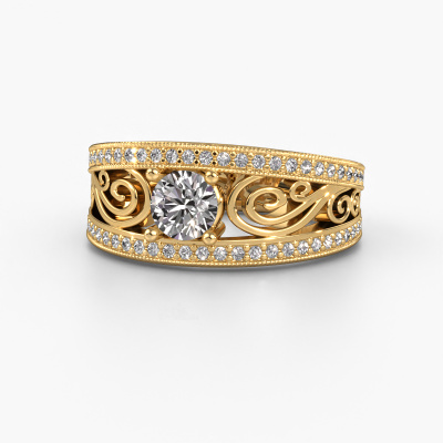 This 14 Carat gold ring is called Julliana and is set with 0.91 crt diamond. For you, there is only one person in your life who stands out in a crowd. Only one that makes your heart skip a beat. A true gem! She, above all others, deserves a special gift. A unique customized jewel made in her honour. We believe this ring is perfect for your special moment. Each detail of this exclusive gold pavé solitaire engagement ring is selected by hand, crafted and polished by our expert goldsmith in our own artisan studio. We strive to achieve the perfect design and composition of the ring, so it enhances the unique features of our diamonds, and lets them shine even brighter. It takes a lot of precision to make but in the end it pays off because of the sheer beauty of the ring. And that is our main goal. It's what gets us excited. The great thing about our online tool is, that you can design your own jewellery into a unique, personalized piece. This unique filigree engagement ring is created with the precious metal combination of gold and gold. But of course you are completely free to select other colours. Each piece of jewellery is made just for you by our master goldsmiths in our own studio.By using our modern techniques, we can design and customize the finest quality jewels with the utmost care for you. Our engagement rings are always priced 30 percent lower than other jewellers. We make engagement rings to order so we don't have to maintain a large stock. If you have a certain budget, we are more than happy to advice you accordingly.Our team adds new designs to our online collection daily. Our designers and goldsmiths work together in creating the best design. We strive to offer a diverse collection of jewels. Perhaps you have a specific jewel design in mind. One you came across somewhere. Please contact us for a free consultation. We will make you an offer, based on a fair price/ quality ratio, that will baffle you.To make it easier for you, we offer a 30 day return policy. Check our terms and conditions.
