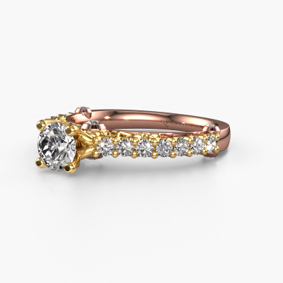 This 14 Carat rose gold ring is called Shaunda and is set with 1.10 crt diamond. For you, there is only one person in your life who stands out in a crowd. Only one that makes your heart skip a beat. A true gem! She, above all others, deserves a special gift. A unique customized jewel made in her honour. We believe this ring is perfect for your special moment. Each detail of this exclusive rose gold pavé solitaire engagement ring is selected by hand, crafted and polished by our expert goldsmith in our own artisan studio. We strive to achieve the perfect design and composition of the ring, so it enhances the unique features of our diamonds, and lets them shine even brighter. It takes a lot of precision to make but in the end it pays off because of the sheer beauty of the ring. And that is our main goal. It's what gets us excited. The great thing about our online tool is, that you can design your own jewellery into a unique, personalized piece. This unique special engagement ring is created with the precious metal combination of rose gold and gold. But of course you are completely free to select other colours. Each piece of jewellery is made to shine bright around your finger. Each jewel is hand made with love by our goldsmiths.By using a combination of the latest modern techniques, combined with ancient crafting, we can make all our engagement rings in our own studio. Each jewel is made to order. This is advantageous because we can offer you a price you won't find anywhere else.Our designers and goldsmiths work together each day, creating new jewels. Perhaps you have found a nice vintage engagement ring somewhere, which can be used to customize your unique ring. Please feel free to contact us. We will make you an offer, based on a fair price/ quality ratio, which will amaze you.To make it easier for you, we offer a 30 day return policy. Check our terms and conditions.