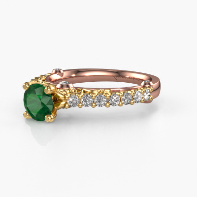 This 14 Carat rose gold ring is called Shaunda and is set with 6 mm emerald. For you, there is only one person in your life who stands out in a crowd. Only one that makes your heart skip a beat. A true gem! She, above all others, deserves a special gift. A unique customized jewel made in her honour. We believe this ring is perfect for your special moment. Each detail of this exclusive rose gold pavé solitaire engagement ring is selected by hand, crafted and polished by our expert goldsmith in our own artisan studio. We strive to achieve the perfect design and composition of the ring, so it enhances the unique features of our emerald, and lets them shine even brighter. It takes a lot of precision to make but in the end it pays off because of the sheer beauty of the ring. And that is our main goal. It's what gets us excited. The great thing about our online tool is, that you can design your own jewellery into a unique, personalized piece. This unique special engagement ring is created with the precious metal combination of rose gold and gold. But of course you are completely free to select other colours. Each piece of jewellery is made to shine bright around your finger. Each jewel is hand made with love by our goldsmiths.By using a combination of the latest modern techniques, combined with ancient crafting, we can make all our engagement rings in our own studio. Each jewel is made to order. This is advantageous because we can offer you a price you won't find anywhere else.Our designers and goldsmiths work together each day, creating new jewels. Perhaps you have found a nice vintage engagement ring somewhere, which can be used to customize your unique ring. Please feel free to contact us. We will make you an offer, based on a fair price/ quality ratio, which will amaze you.To make it easier for you, we offer a 30 day return policy. Check our terms and conditions.