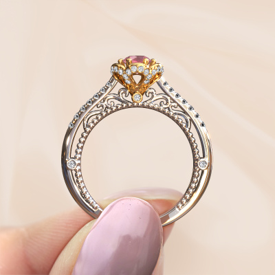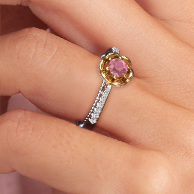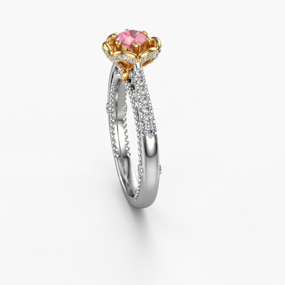 This 14 Carat white gold ring is called Abbey and is set with 4.2 mm tourmaline pink. Is your girlfriend hooked on vintage? Then this white gold pearl edges engagement ring will surely match her style perfectly. A trendy ring with just a hint of vintage adornment. A truly stunning, romantic design! Especially when you customize your ring to your own liking. This vintage pavé solitaire engagement ring is set with stunning tourmaline pink. As you can see, you are the boss in selecting a gemstone which matches the style of your girlfriend best. Each gemstone is carefully selected by our merchants whom are spread throughout the world. Nothing but the best gems for our expert goldsmith. After all, it is his crowning glory! Each jewel is made just for you, with attention to detail and design.By using our modern techniques, we can design and customize the finest quality jewels with the utmost care for you. Our engagement rings are always priced 30 percent lower than other jewellers. We make engagement rings to order so we don't have to maintain a large stock. If you have a certain budget, we are more than happy to advice you accordingly.Our designers and goldsmiths work together each day, creating new jewels. Perhaps you have found a nice vintage engagement ring somewhere, which can be used to customize your unique ring. Please feel free to contact us. We will make you an offer, based on a fair price/ quality ratio, which will amaze you.To make it easier for you, we offer a 30 day return policy. Check our terms and conditions.
